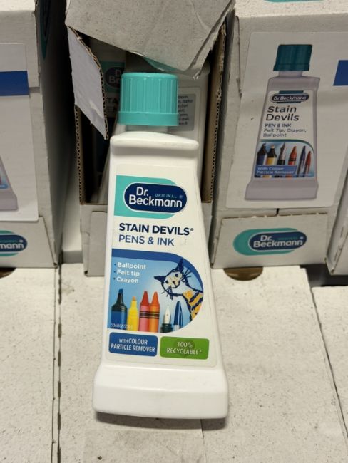 (1,536 +/-) BOTTLES OF DR. BECKMANN STAIN DEVILS PENS & INK 50 ML E EACH (SEE PHOTOS FOR DETAILS)