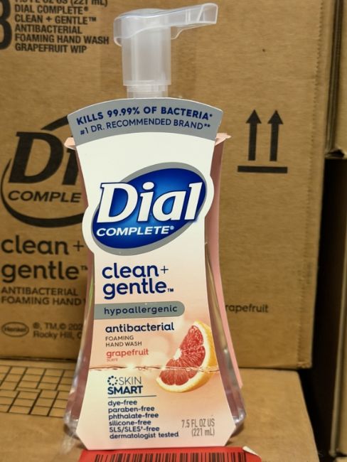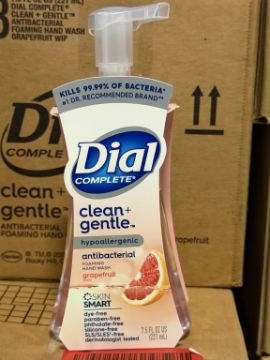 (168 +/-) BOTTLES OF DIAL COMPLETE CLEAN + GENTLE ANTIBACTERIAL FOAMING HAND WASH 7.5 FL OZ EACH (SEE PHOTOS FOR DETAILS)