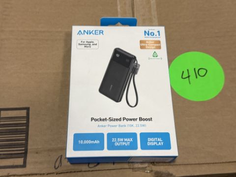 (410 +/-) OF ANKER A1388 POCKET-SIZE POWER BOOST BANK (10K, 22.5W) (SEE PHOTOS FOR DETAILS)