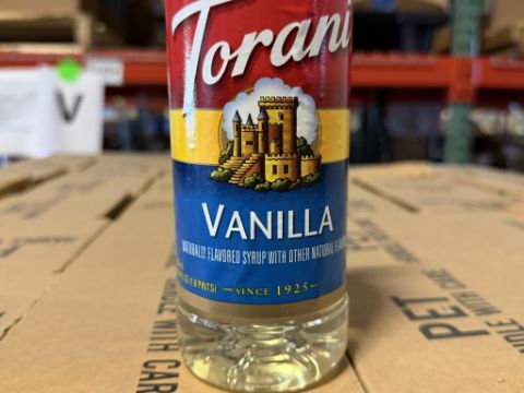 (168 +/-) BOTTLES OF TORANI VANILLA NATURALLY FLAVORED SYRUP WITH OTHER NATURAL FLAVORS 25.4 FL OZ BEST BY DATE: 01/24/2027 (SEE PHOTOS FOR DETAILS)