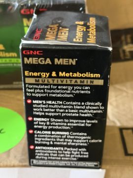(134 +/-) PACKS OF GNC MEGA MAN ENERGY & METABOLISM MULTIVITAMIN WITH CLINICALLY PROVEN BLEND DIETARY SUPPLEMENT (90 CAPLETS/45 DAY SUPPLY) BEST BY DATE: 03/26 (SEE PHOTOS FOR DETAILS)