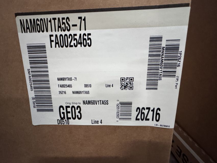 MODEL: NAM60E1TA5S-71 MOTOR TYPE ECM, FEATURES CONFIGURATION 1-PIECE PRODUCT TYPE AIR HANDLING UNIT REFRIGERANT TYPE R454B TONNAGE 5 (SEE PHOTOS FOR DETAILS)