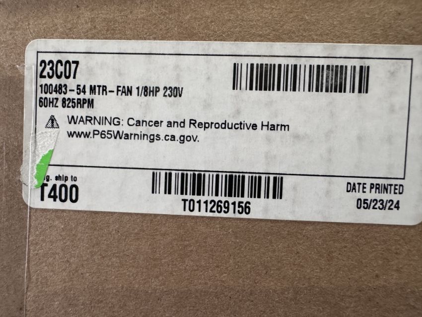 23C07 NS17H24, NS17H30, NS17A30 1/8 HP, 209/230 VAC (1 PHASE, 60/50 HZ) 825 RPM 1 SPEED PSC 1/2 INC SHAFT DIAMETER VERTICAL MOUNTING ROTATION: REVERSIBLE BALL BEARING (SEE PHOTOS FOR DETAILS)