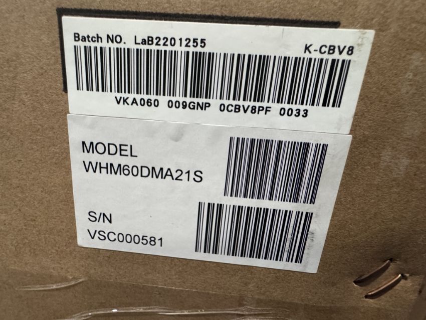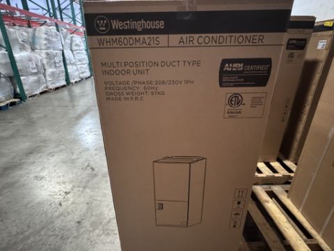 MODEL: WHM60DMA21S CAPACITY: 56,000 BTU/H RATED COOLING/HEATING., MOTOR: 5 TON ECM (ELECTRONICALLY COMMUTATED MOTOR).AIRFLOW: 1706 CFM. VOLTAGE/PHASE: 208/230V / 1 PHASE / 60 HZ. CONFIGURATION: MULTI-POSITION (UPFLOW, DOWNFLOW, HORIZONTAL).COIL TYPE: ALUMINUM FIN. DIMENSIONS: APPROXIMATELY 53-7/8 IN (H) X 24 IN (D).WEIGHT: ~97 KG (SEE PHOTOS FOR DETAILS)