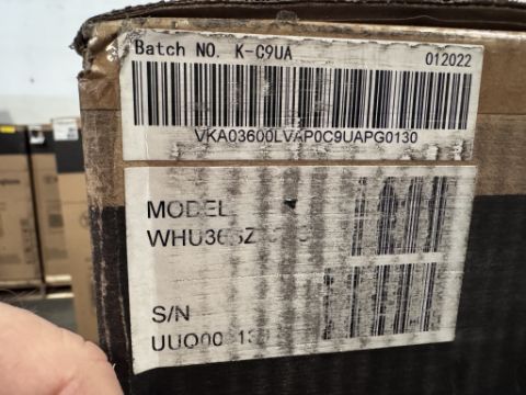 MODEL: WHU36SZA21S SYSTEM TYPE: INVERTER HEAT PUMP (SINGLE ZONE) CAPACITY: 36,000 BTU/H (3 TON) EFFICIENCY: ~15.2 - 15.5 SEER2 / 11.0 - 11.3 EER2 / 9.4 HSPF2 POWER SUPPLY: 208/230V, PHASE, 60HZREFRIGERANT: R-410A (SEE PHOTOS FOR DETAILS)
