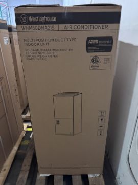 MODEL: WHM60DMA21S CAPACITY: 56,000 BTU/H RATED COOLING/HEATING., MOTOR: 5 TON ECM (ELECTRONICALLY COMMUTATED MOTOR).AIRFLOW: 1706 /PHASE: 208/230V / 1 PHASE / 60 HZ. CONFIGURATION: MULTI-POSITION (UPFLOW, DOWNFLOW, HORIZONTAL).COIL TYPE: ALUMINUM: APPROXIMATELY 53-7/8 IN (H) X 24 IN (D).WEIGHT: ~97 KG (SEE PHOTOS FOR DETAILS)