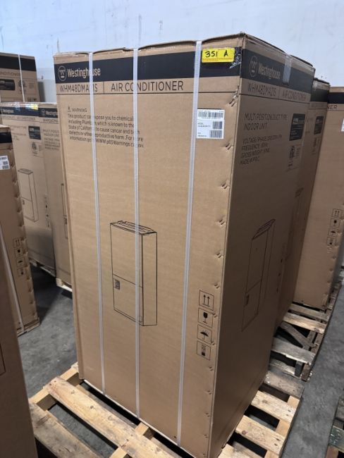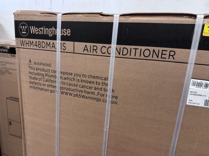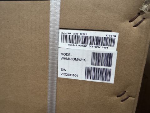 AIR HANDLER. MODEL: WHM48DMA21S MODEL NUMBER: WHM48DMA21SCOOLING CAPACITY: 48,000 BTU/H (4 TON)HEATING CAPACITY: 47,000 - 48,000 BTU/H, VOLTAGE: 208/230 V (1 PHASE, 60 HZ) MOTOR TYPE: ELECTRONICALLY COMMUTATED MOTOR (ECM)REFRIGERANT: R-410A (SEE PHOTOS FOR DETAILS)