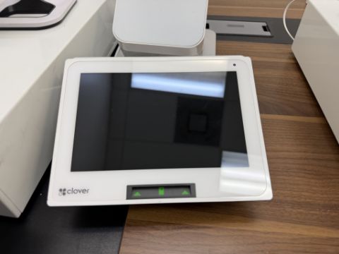 CONSISTS OF A 14 INCH TOUCHSCREEN, 8 INCH TOUCHSCREEN PAYMENT PROCESSOR, STATION RECEIPT PRINTER, BAR CODE SCANNER, SOFTWARE HUB AND REGISTER KEY AND 16 ROLLS OF RECEIPT PAPER, TESTE, POWER IS ON (SEE PHOTOS FOR DETAILS)