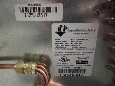 REPLACEMENT COIL SERIAL NO: 7125J12517 DESIGN PRESS: MAX 450 PSI ABNORMAL PRESS MAX 600 PSI CONT OPER TEMP 250 DEG F (SEE PHOTOS FOR DETAILS)