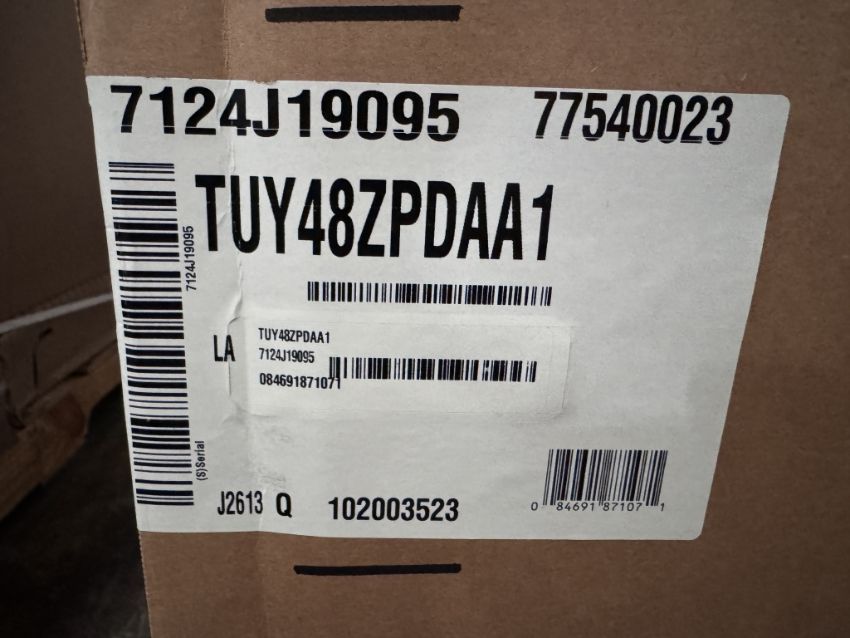 MODEL: TUY48ZPDAA1 PRODUCT TYPE: AIR HANDLING UNIT (INDOOR) NOMINAL CAPACITY: 4 TON (48,000 BTU)DIMENSIONS: APPROXIMATELY 48" H X 21 7/8" W X 26" DNET WEIGHT: 163 LBS. (APPROX.), SHIPPING WEIGHT: 155 - 191 LBS. LIQUID VALVE SIZE: 3/8 INCH (SEE PHOTOS FOR DETAILS)