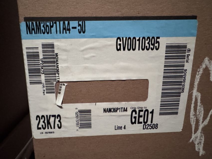 MODEL: NAM36P1TA4-50 ECONOMICAL / QUIET, MOTOR TYPE PSC FEATURES CONFIGURATION 1-PIECE, PRODUCT TYPE AIR HANDLING UNIT TONNAGE 3 (SEE PHOTOS FOR DETAILS)