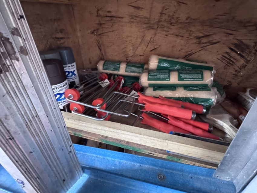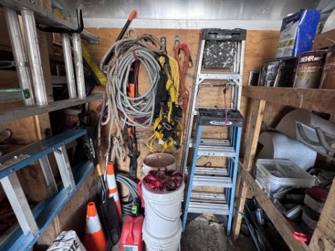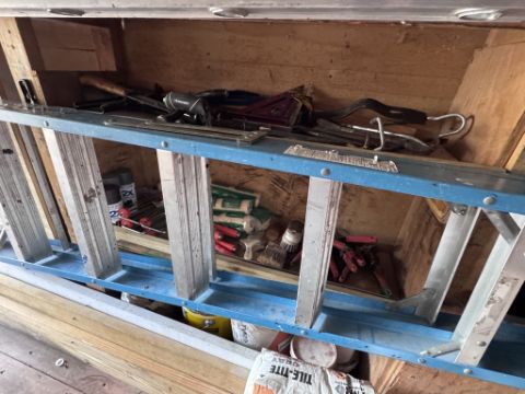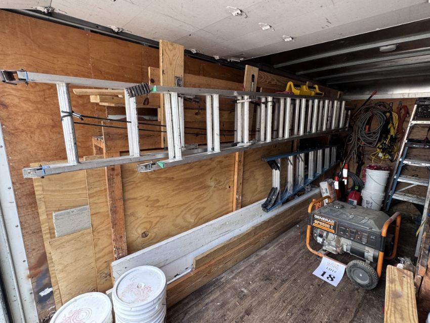 IN BACK OF BOX TRUCK (LOT 11) CONSISTING OF BUT NOT LIMITED TO: ASSORTED ROOFING CONTRACTOR TOOLS AND SUPPLIES SUCH AS: WERNER 28 FT ALUMINUM EXTENSION LADDER, WERNER 20 FT EXTENSION LADDER, 8 FT WERNER A FRAME LADDERS, 4 FT WERNER A FRAME LADDER, ASSORTED HAND TOOLS, ASSORTED PLYWOOD, EXTENSION CORDS, SAFETY EQUIPMENT, ETC. PLEASE NOTE: BUYER IS RESPONSIBLE FOR REMOVING ALL OF THE EQUIPMENT AND SUPPLIES BY MAY 14, 2026. (SEE PHOTOS FOR DETAILS)