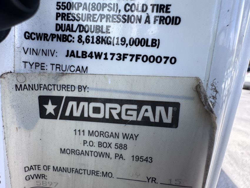 VIN: JALB4W173F7F00070, STYLE / BODY: 2 DOOR CAB OVER, ENGINE: 3.0L I4 DI DIESEL, ODOMETER READING: 113,010, MORGAN DRY VAN ALUMINUM BOX 16 X 8, RUNS AS IT SHOULD, COLD A/C, 6 KEYS, CHECK ENGINE LIGHT IS ON, PLEASE NOTE: TOP OF BOX DAMAGED AND REPAIRED BY CHASE ROOFING, OVERALL GOOD CONDITION, (TITLE ON HAND) (SEE PHOTOS FOR DETAILS)