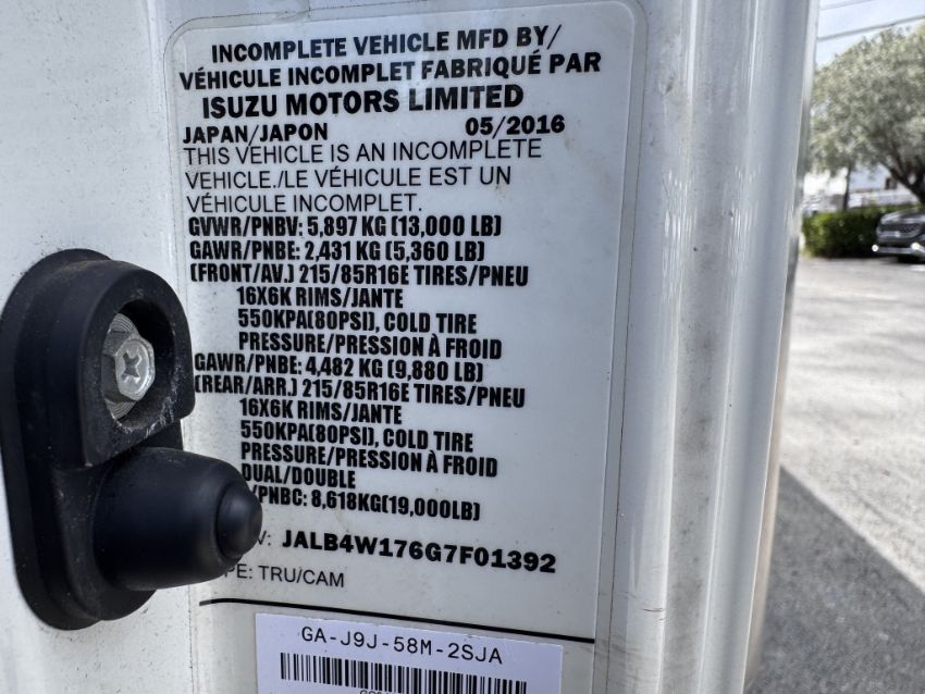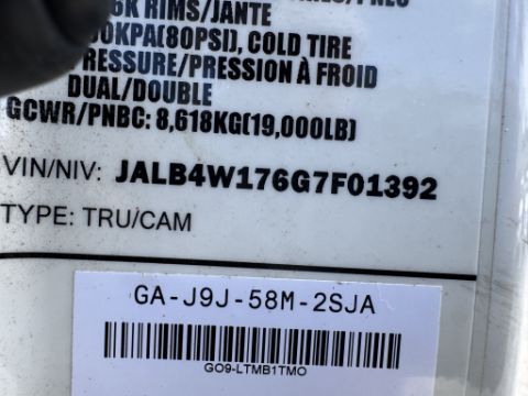 VIN: JALB4W176G7F01392 BODY: 2 DOOR CAB OVER, ENGINE: 3.0L I4 DI, DIESEL, ODOMETER READING: 92,458, MORGAN DRY VAN ALUMINUM BOX SIZE 16 FT BY 8 FT, RUNS AS IT SHOULD, CHECK ENGINE LIGHT IS ON, COLD A/C, 3 KEYS, (1) WERNER 40 FT ALUMINUM LADDER INCLUDED, SIDE MOUNTED LADDER RACK, GOOD OVERALL CONDITION, (TITLE ON HAND), PLEASE NOTE: THE CONTENTS OF EQUIPMENT AND SUPPLIES IN THIS BOX TRUCK ARE NOT INCLUDED IN THIS LOT. THE CONTENTS WILL BE SOLD IN THE NEXT LOT (LOT 8A) (SEE PHOTOS FOR DETAILS)
