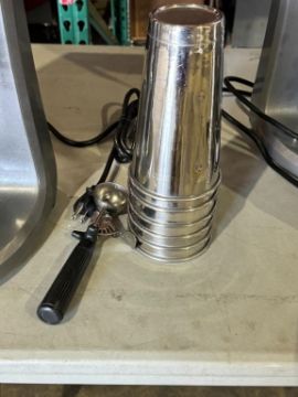 MAKER, 3 SPEEDS TRIPLE HEAD, MODEL HMD400, TESTED AND WORKING, INCLUDES (6) STAINLESS STEEL TALL MILKSHAKE MIXER CUPS AND (1) ICE CREAM SCOOPER