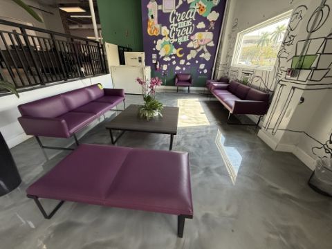 CONSISTING OF (3) BENCH SEAT, (1) COFFEE TABLE, (2) ARM CHAIRS, BRAND BY: SIT ON IT SEATING