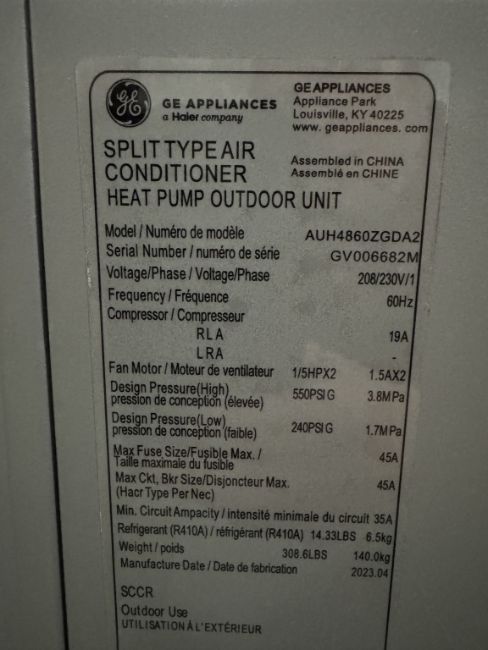 (NEW - OUT OF BOX) MODEL: AUH4860ZGDA2 EER 11.5/10.5 HSPF RATING 10.5 SEER 18 STYLE HEAT PUMP OUTDOOR (SEE PHOTOS FOR DETAILS)