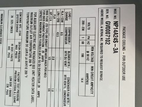 (NEW DISPLAY MODEL IN SHOWROOM). MODEL: NP14A24S-3A FEATURES AIRFLOW HORIZONTAL COMPRESSOR TYPE SINGLE-STAGE PRODUCT TYPE AIR CONDITIONER PACKAGED UNIT SEER 14 2TON (SEE PHOTOS FOR DETAILS)